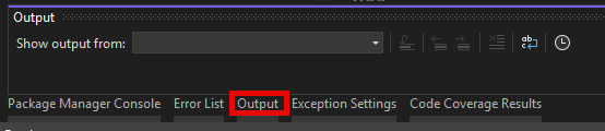 Ok, lets look in the Output window. This is not helpful, it is not showing anything. To be fair, it usually defaults to something but never the correct output window. I have not seen it blank before!