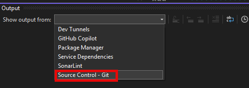 Make sure you choose the correct Output Log, which in this case is "SourceControl - Git"