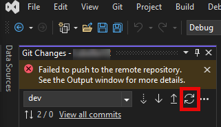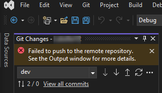 How to fix the message "Failed to push to the remote repository. See the output window for more details" in Visual Studio.