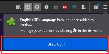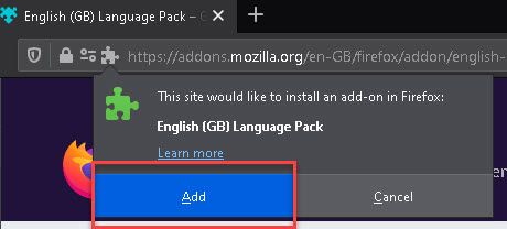 If you head over to the Dictionaries and language packs area of the Mozilla site, you can choose to install the correct dictionary and language pack. A dictionary is all the words in the language, but a language pack changes Firefox's interface language, including menu options and settings!