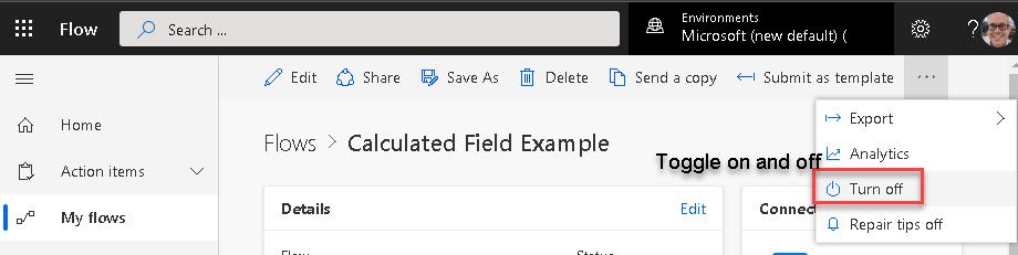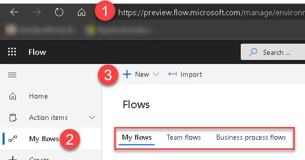 If you visit https://flow.microsoft.com and then click "My Flows". To be honest, I'm too lazy tonight to look into "Team Flows" and "Business process flows". You can do that! I'm going to carry on with "My flows".
