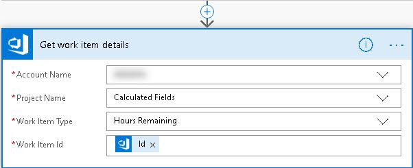 Then click the little plus under the box to add a new item called "get work item details". This will get detaiuls of the workitem and put it into some dynamic content behind the scenes.